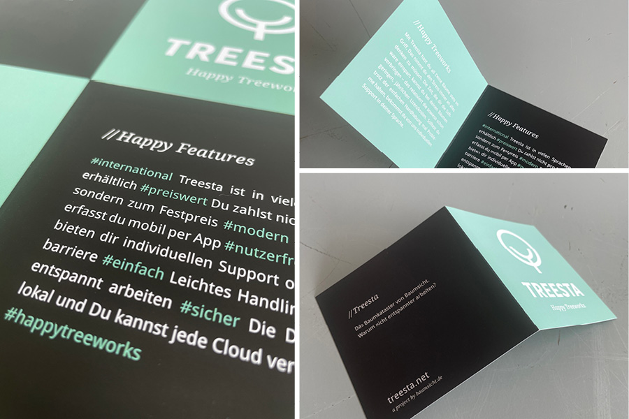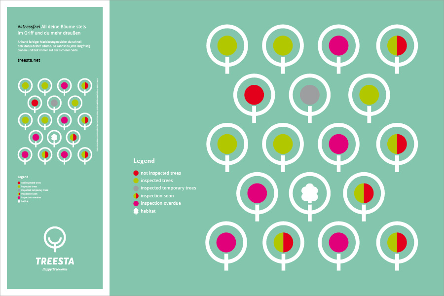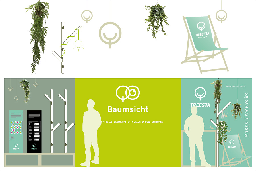 So entstand ein rundum glückliches Erscheinungsbild mit Smiley-Baum, frischen Farben, netten Infografiken zum Hervorheben der Features und einem Messestand, der mit Liegestuhl und Begrünung zum entspannen einlädt. Denn: warum nicht entspannter arbeiten. Mit Treesta.